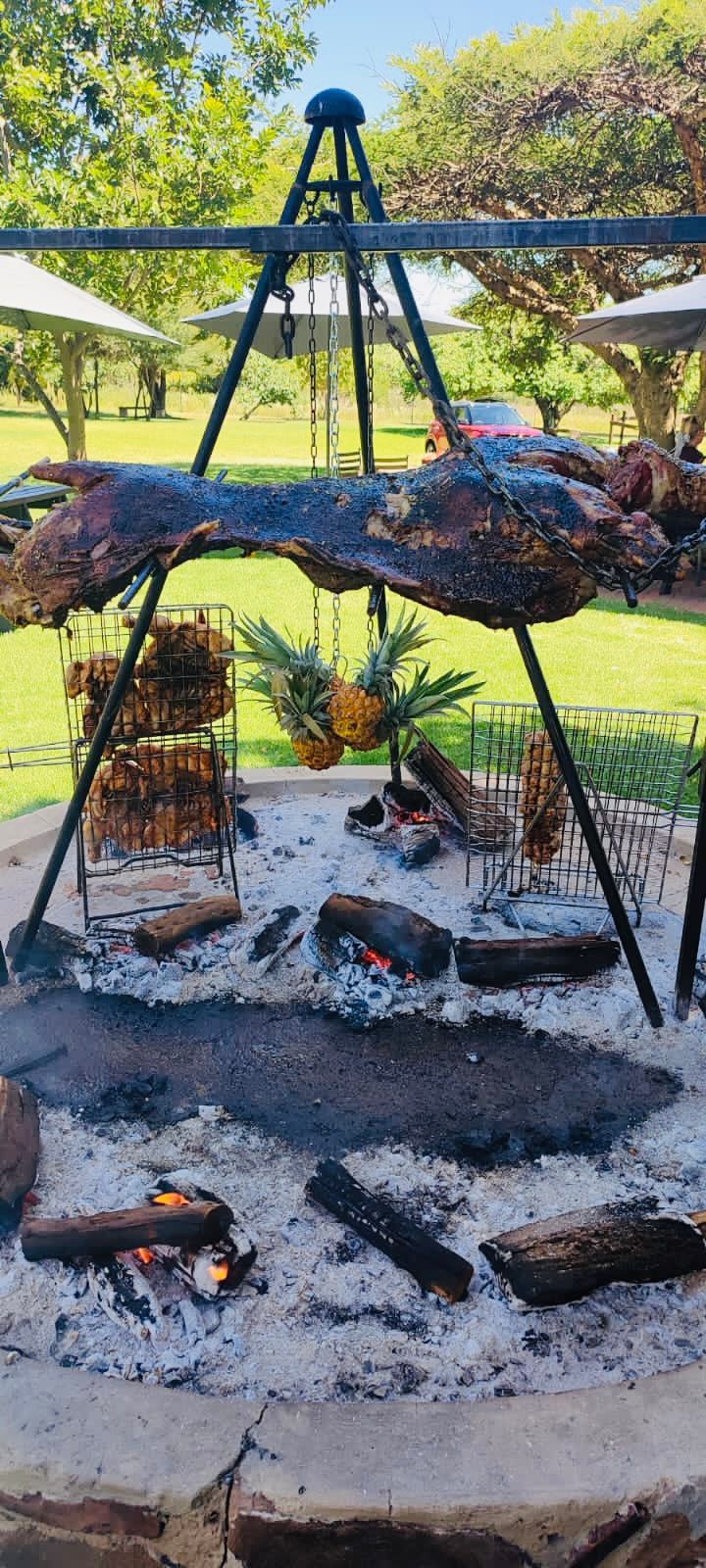 A privilege to celebrate a 50-year anniversary in the African bush, with guests around the fire pit while I prepped and served mains at the lodge’s bar.